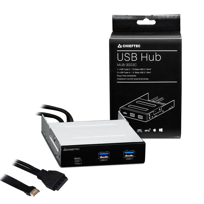CHIEFTEC MUB-3003C je USB rozbočovač, ktorý umožňuje rozšíriť USB pripojenie pre staršie aj nové systémy, pridaním dvoch portov USB typu A s 5 Gb/s USB 3.1 Gen1, ako aj jeden port USB