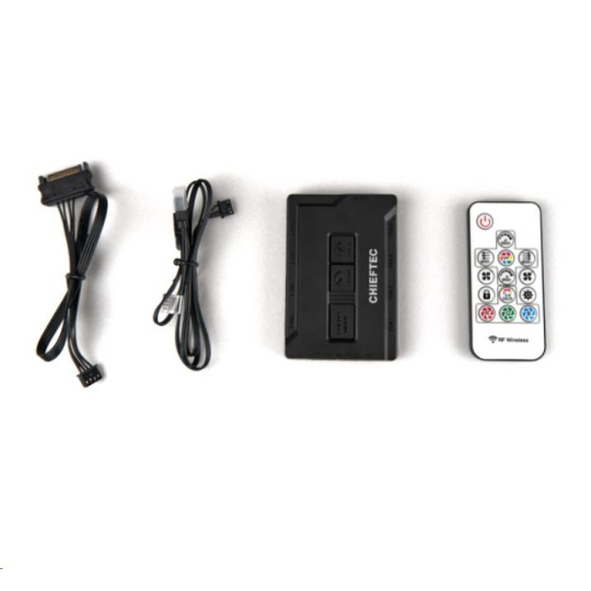 | rozsah dodávky | Sada skrutiek, návod na použitie, skrutky s palcom, diaľkové ovládanie Ovládací rozbočovač RGB (DF-908) s 3PIN +5V M/B Sync a napájacím káblom SATA Predná časť: 3x 120mm predinštalovaný dúhový ventilátor A-RGB Zadná časť: 1x 120mm predinštalovaný dúhový ventilátor A-RGB |