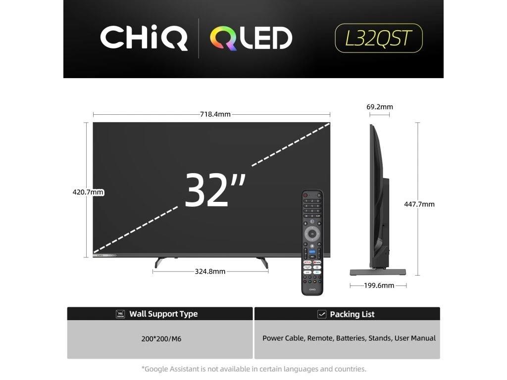 CHiQ L32QST TV 32", QLED, Full HD, Google TV, Frameless, Dolby Audio, dbx-tv, HDR 10