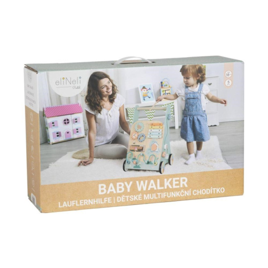 Krásne multifunkčné chodítko pre deti s xylofónom očarí každého svojim spracovaním, pastelovými farbami a množstvom možností na hru aj vzdelávanie. Chodítko pomôže deťom so samostatnou chôdzou, zabaví ich svojimi hracími prvkami, zdokonalí ich zručnosti. Bočné strany chodítka sú vkladačkou a dráhou s autíčkami, predná strana deťom ponúka farebné kolieska, korálky, dvierka na preskúmanie, i farebný xylofón.