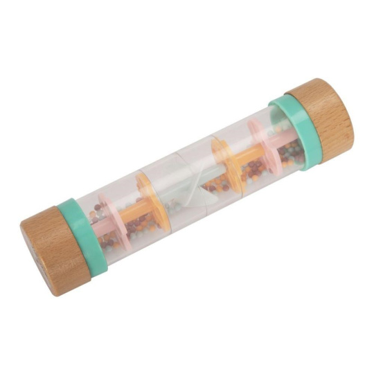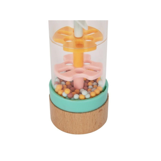 Chrastítko pre bábätká v originálnom dizajne, s priehľadnou hlavnou časťou a farebnými korálkami, láka bábätká k preskúmaniu a hre. Chrastítko Dešťové korálky so množstvom drobných korálikov v jemných pastelových farbách vydáva pri každom pohybe príjemné zvuky. Pri hre s chrastítkom bábätká zdokonaľujú motorické zručnosti a stimulujú zmysly.
