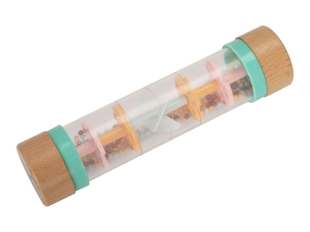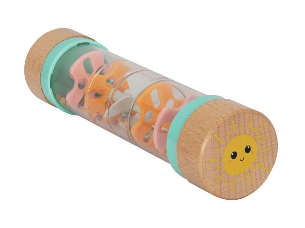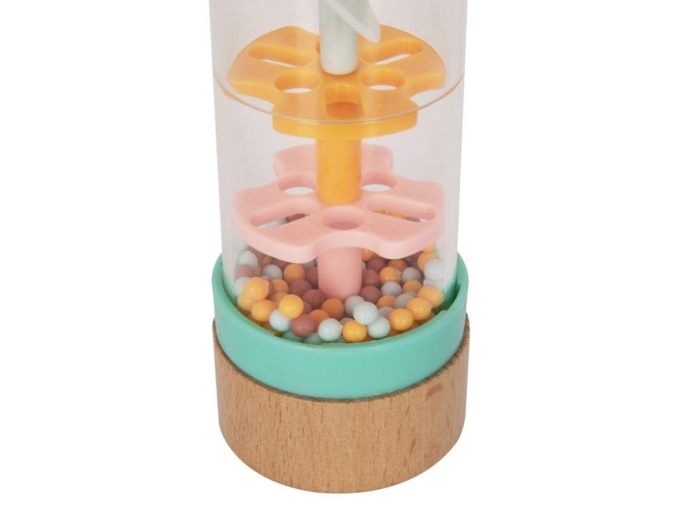 Chrastítko pre bábätká v originálnom dizajne, s priehľadnou hlavnou časťou a farebnými korálkami, láka bábätká k preskúmaniu a hre. Chrastítko Dešťové korálky so množstvom drobných korálikov v jemných pastelových farbách vydáva pri každom pohybe príjemné zvuky. Pri hre s chrastítkom bábätká zdokonaľujú motorické zručnosti a stimulujú zmysly.