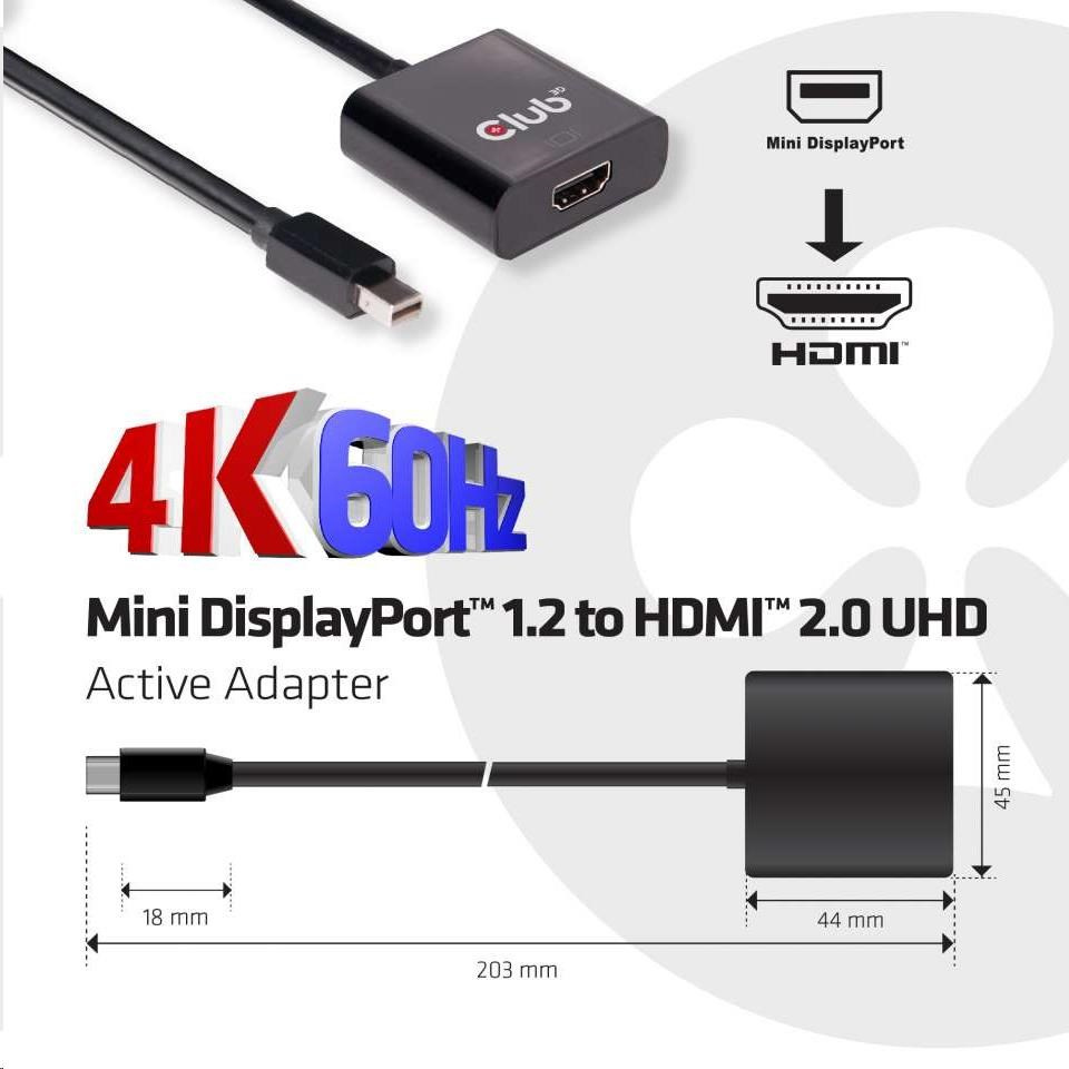 Club3D Adaptér aktívny mini DisplayPort 1.2 na HDMI 2.0 4K60Hz UHD, (M/F), 20 cm