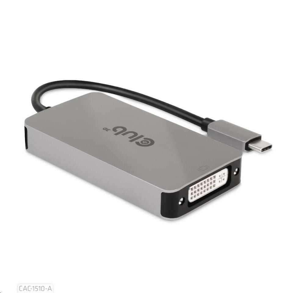 club 3D CAC-1510-A je USB3.2 Gen1 Type-C vstup na Dual Link DVI-D alebo Single Link DVI výstupný adaptér HDCP OFF verzia pre Apple Cinema Display alebo iné displeje, ktoré nepodporujú HDCP.