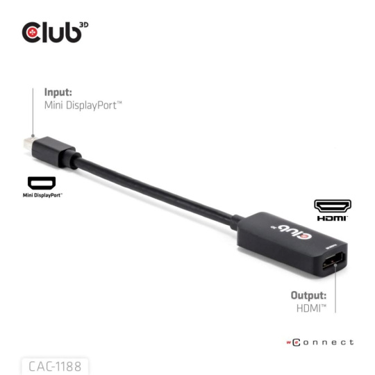Club3D Adaptér miniDP 1.4 na HDMI, 4K120Hz nebo 8K60Hz HDR10+, M/F, 9cm
