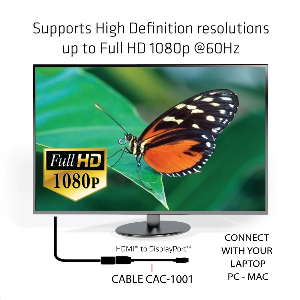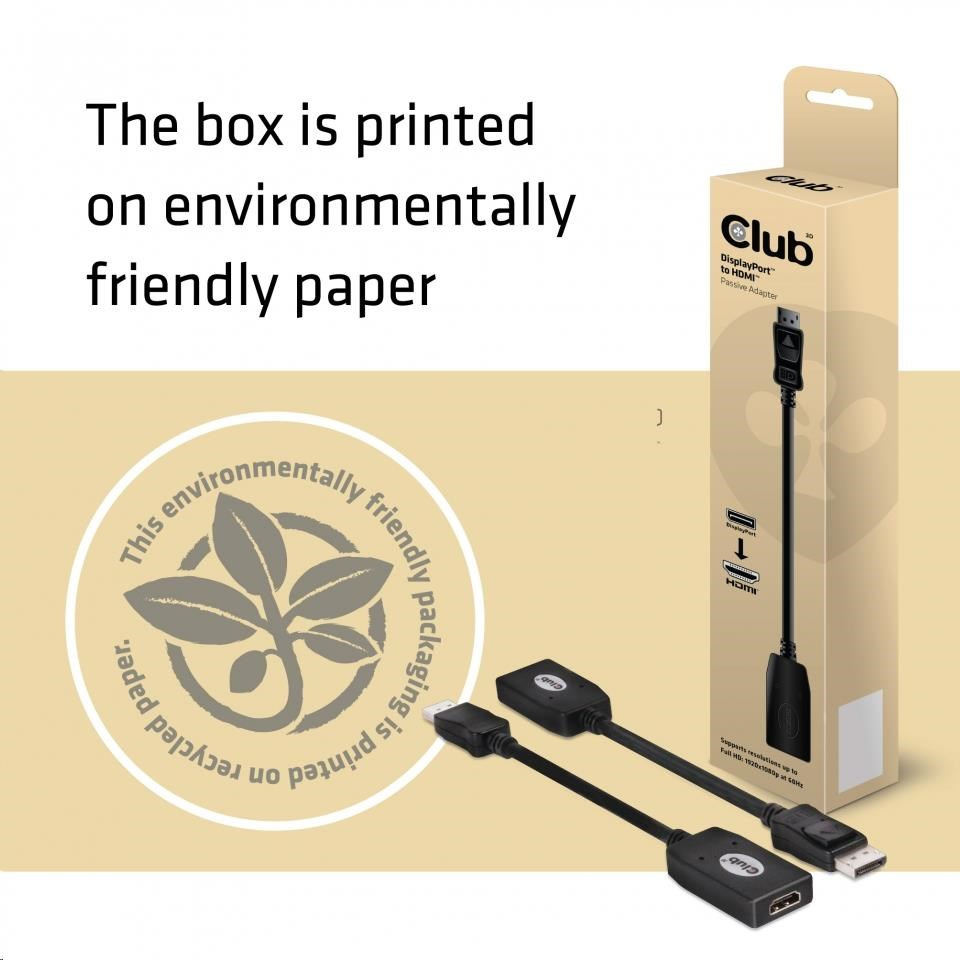 - Pasívny adaptér Club 3D DisplayPort ™ na HDMI ™