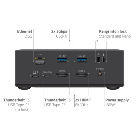 CSV-2562 je certifikovaná dockovacia stanica Thunderbolt 5, ktorá združuje všetky nevyhnutné porty do jedného zariadenia, vrátane slotu pre SSD umožňujúceho jednoduché rozšírenie úložiska počítača s rýchlosťou prenosu dát zodpovedajúcou internému disku.