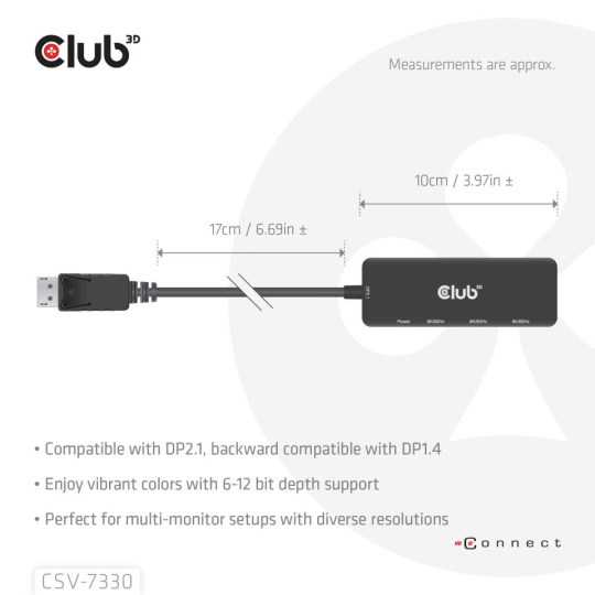 Club3D hub MST (Multi Stream Transport) DisplayPort 1.4 na 3x HDMI 8K60Hz (M/F)