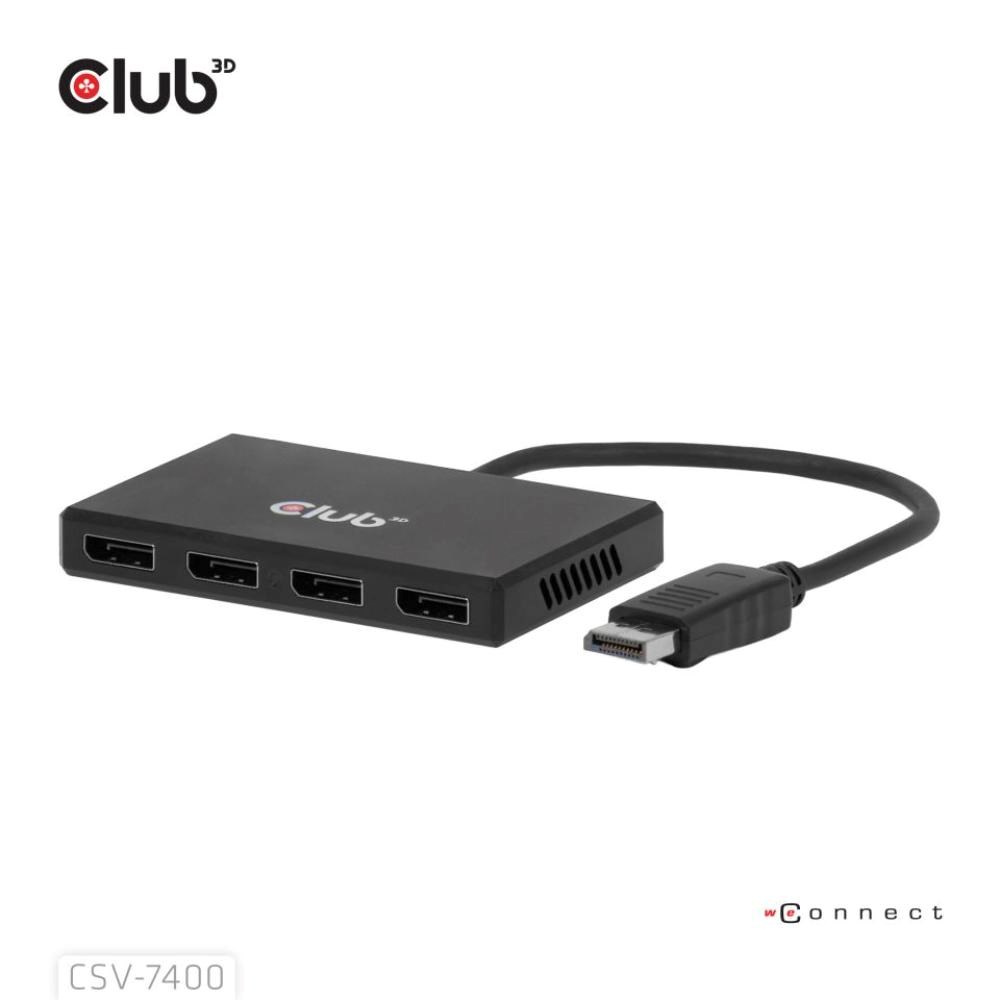 Club 3D CSV-7400 vám umožní pripojiť až štyri displeje z jedného DisplayPort zdroja. Podporuje súčasný výstup štyroch obrazoviek v rozlíšení 4K pri 30 Hz, vďaka čomu je ideálnym riešením pre multitasking, vyššiu produktivitu alebo rozšírený pracovný priestor.