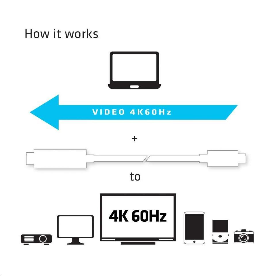CAC-1514 Club 3D je aktívny prevodník signálu HDMI ™. Kábel UHD USB C na HDMI ™ 2.0 je najjednoduchšie riešenie pre pripojenie zdrojového zariadenia obsahujúceho port USB 3.1 Type C s alternatívnym režimom DisplayPort ™ k monitoru UHD monitoru, televízoru alebo projektoru s podporou rozhrania HDMI ™ 2.0. Adaptér je napájaný pomocou portu USB C a nevyžaduje tak žiadne externé napájanie.