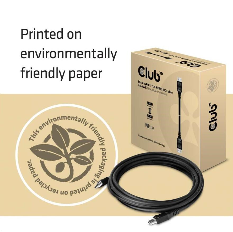 - Club 3D DisplayPort™ 1.4 HBR3 8K kábel.
