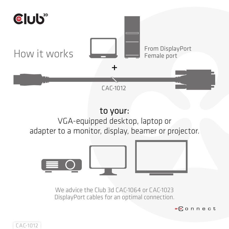Club3D kabel DP na VGA, M/M, 2m, 28 AWG