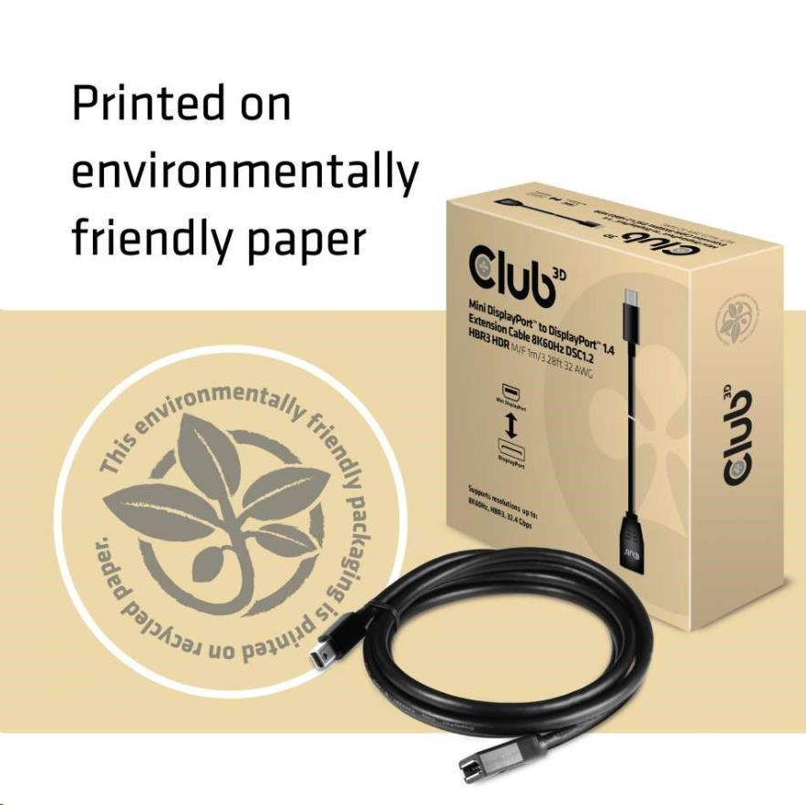 Club3D Prodlužovací kabel Mini DisplayPort 1.4 na DisplayPort 8K 60Hz DSC 1.2 HBR3 HDR Bidirectional (M/F), 1m