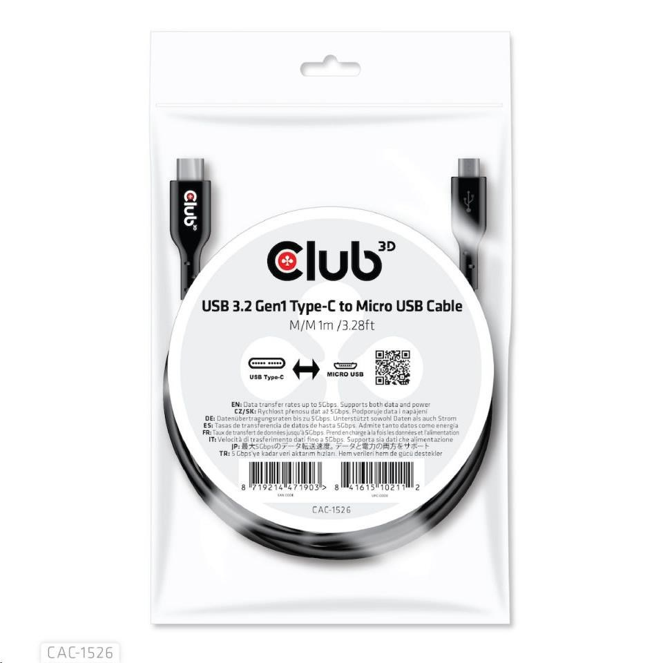 Kábel USB Club3D 3.2 Kábel typu C na Micro USB (M/M), obojsmerný, 1 m