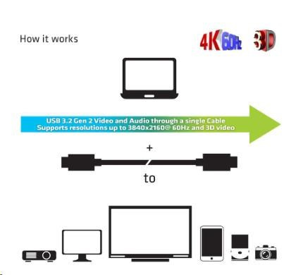 - USB 3.2 Gen 2 Video a zvuk cez jeden kábel