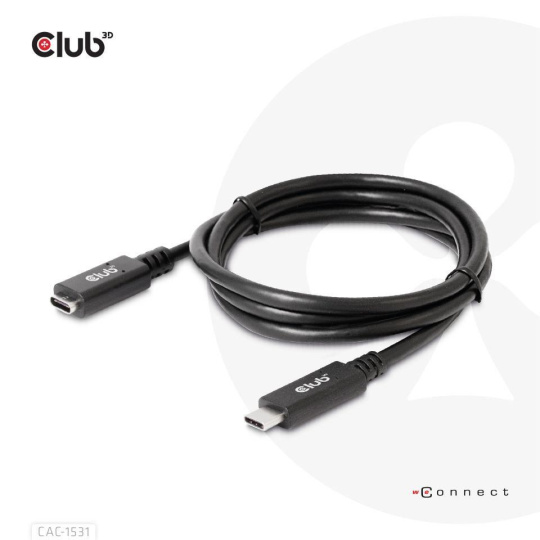 Predlžovací kábel Club 3D CAC-1531 USB Gen1 Type-C 5Gbps 60W(20V/3A) 4K60Hz M/F 1m/3.28ft pripojí váš notebook, tablet alebo telefón s výstupom USB typu C k vašim obľúbeným existujúcim periférnym zariadeniam, príslušenstvu a nabíjačkám. Umožňuje prenos videa, dát a napájania cez jeden kábel a oboma smermi. Tento kábel podporuje USB Gen1 Video až do 4K60Hz, dáta až do 5Gbps a výstup až do 60Watt(20V/3A) na Downstream nabíjanie alebo napájanie notebooku, tabletu alebo smartfónu.
