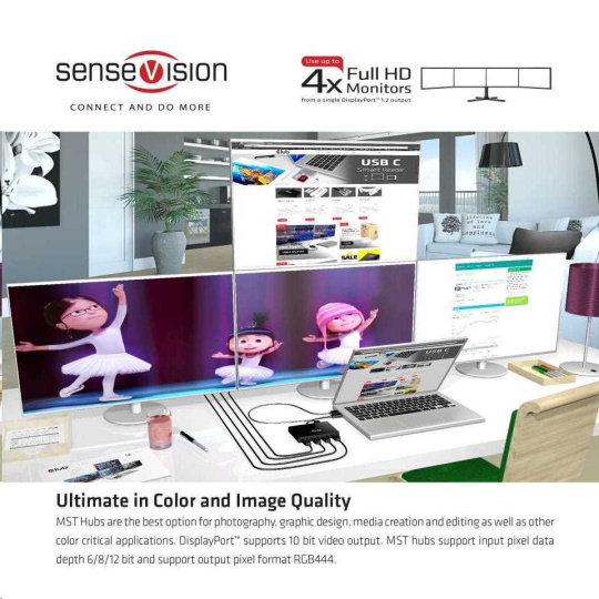 Rozbočovače Club 3D SenseVision MST využívajú technológiu Multi Stream Transport, jedinečnú funkciu DisplayPort ™ 1.2, ktorá umožňuje prenášať viac nezávislých nekomprimovaných video (a audio) tokov na jedinom kábli To umožňuje použitie viacerých monitorov pripojených pomocou rozbočovača MST. Rozbočovače Club3D MST sú schopné distribuovať tieto video toky na pripojené obrazovky.