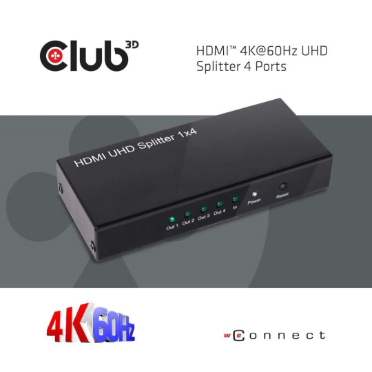 Club3D Rozdeľovač videa 1:4 HDMI 2.0 4K60Hz UHD, 4 porty