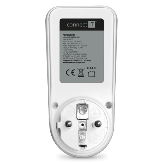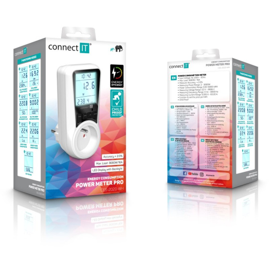 Digitálny merač CONNECT IT "PowerMeter Pro" s jednoduchým dizajnom slúži na meranie spotreby elektrickej energie rôznych domácich spotrebičov. Merač disponuje veľkým podsvieteným LED displejom a jednoduchým ovládaním. Vďaka tomu je veľmi prehľadný a spoľahlivý.