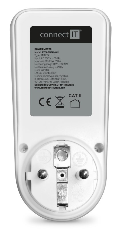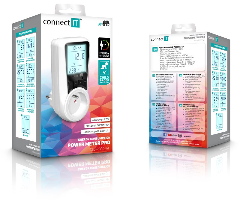 Digitálny merač CONNECT IT "PowerMeter Pro" s jednoduchým dizajnom slúži na meranie spotreby elektrickej energie rôznych domácich spotrebičov. Merač disponuje veľkým podsvieteným LED displejom a jednoduchým ovládaním. Vďaka tomu je veľmi prehľadný a spoľahlivý.