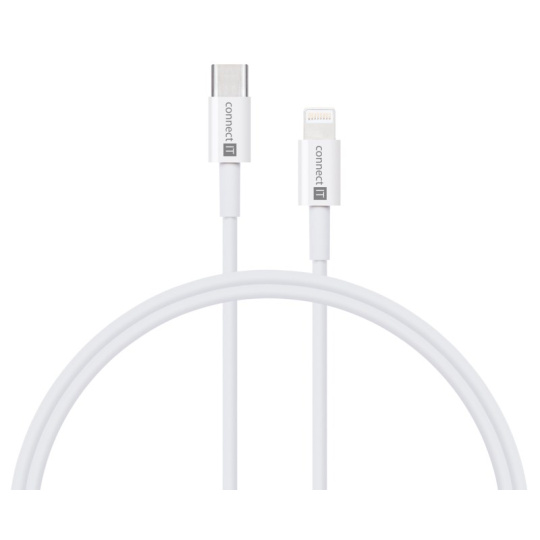CONNECT IT Duplex nabíjecí adaptér 1xLightning, 1×USB-C, 20W, 1xLightning - USB-C kabel, bílá