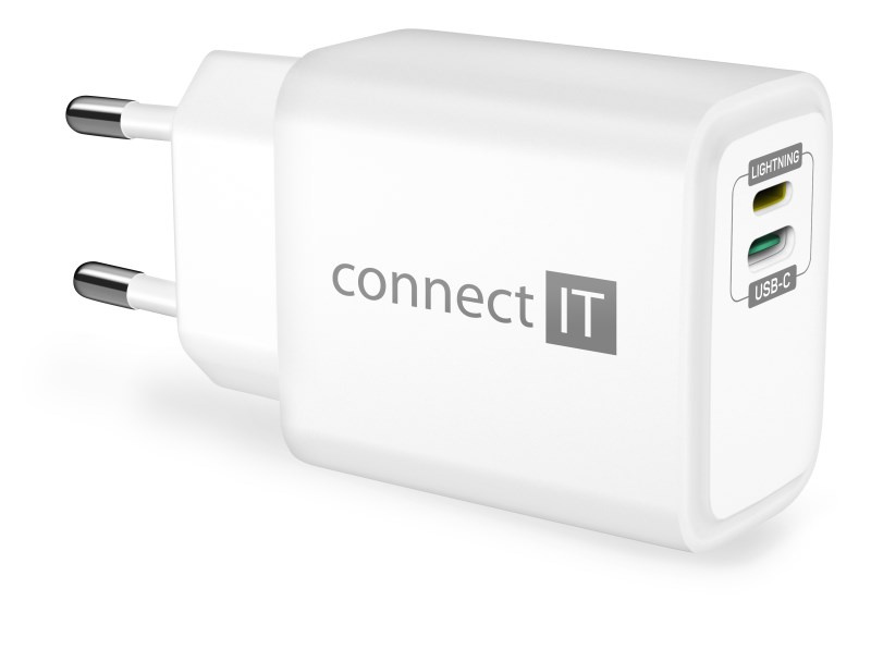 Unikátna cestovná nabíjačka CONNECT IT "Duplex" disponuje dvomi portmi - Lightning a USB-C. Vďaka tejto jedinečnej technológii je možné nabíjať zariadenia s Lightning vstupom, ako aj USB-C vstupom, jedným univerzálnym káblom. Nabíjačka je určená na napájanie a nabíjanie mobilných telefónov, tabletov, power bankov, akčných kamier, elektronických čitateľov kníh, MP3 a MP4 prehrávačov, herných konzol a mnohých ďalších prenosných zariadení doma, v kancelárii aj na cestách. Technológia Power Delivery (PD) umožňuje rýchlonabíjanie s výkonom 20 W. Súčasťou balenia je aj veľmi kvalitný kábel Lightning -> USB-C, ktorý dokáže preniesť až 27 W.