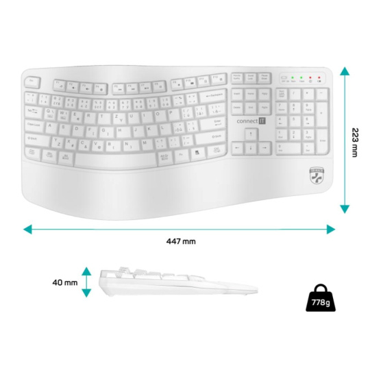 CONNECT IT FOR HEALTH Ergonomická klávesnice ErgoOffice, Bezdrátová, CZ+SK, bílá