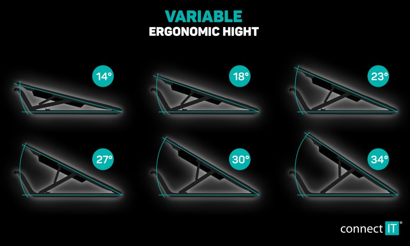 - Nastaviteľná výška v 4 rôznych stupňoch (8°, 15°, 19° a 22°)