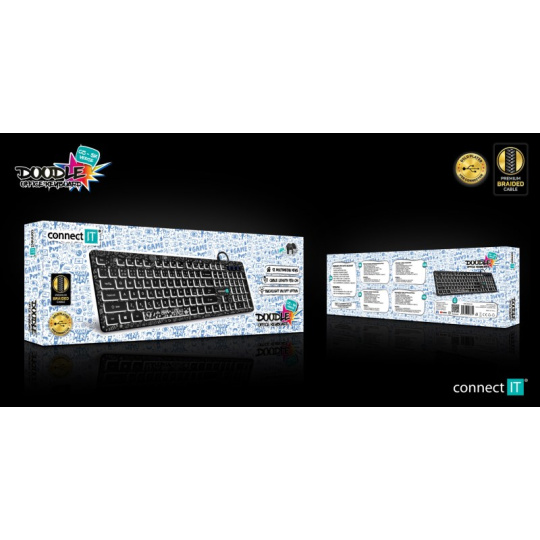 Podsvietená klávesnica s unikátnym DOODLE motívom, určená na domáce použitie aj na vysoko záťažové profesionálne použitie v kanceláriách a firmách.