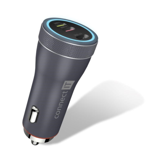Unikátna trojpólová nabíjačka do auta CONNECT IT "Duplex" s kombináciou výstupov USB-C a Lightning s kombinovaným výkonom 55 W.