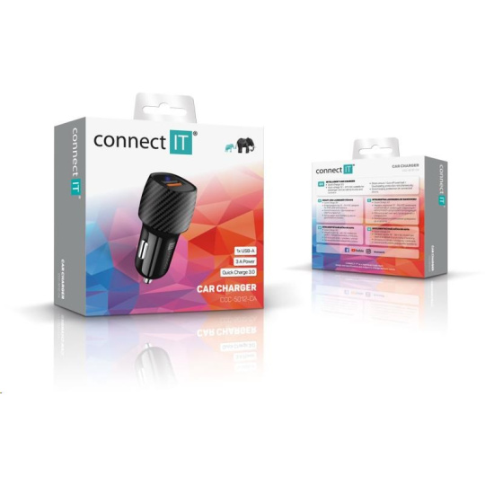 CONNECT IT InCarz QUICK CHARGE 3.0 nabíjačka do auta, 1x USB-A, 3 A, uhlíková