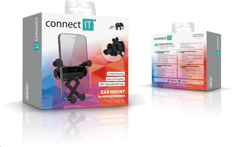 Poloha vo vetracej mriežke spĺňa bezpečnostné požiadavky na umiestnenie mobilného telefónu vo vozidle, kde telefón nebráni vodičovi vo výhľade. Inštalácia je veľmi jednoduchá - stačí vložiť držiak do vetracej mriežky a je hotovo. Potom stačí telefón vložiť do držiaka, ktorý ho automaticky a bezpečne uzamkne pomocou štvorbodového paralelogramu.