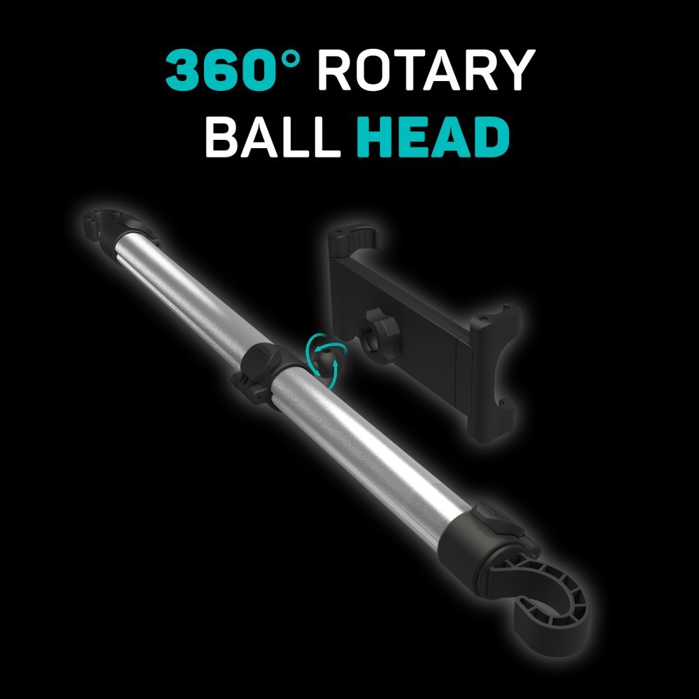 Držiak má nastaviteľné klipy a silikónové koncové kryty, takže sa nemusíte obávať poškrabania vášho zariadenia počas jazdy. Guľová hlava držiaka umožňuje rotáciu v rozsahu 360 stupňov. Držiak je vyrobený z kvalitného hliníka a plastu v elegantnom čiernom farebnom prevedení.