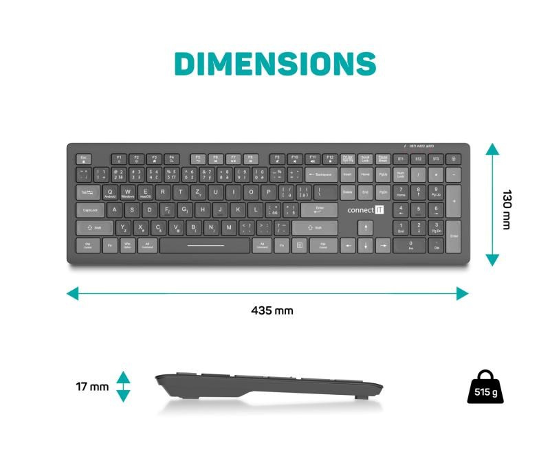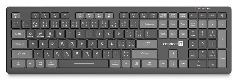CONNECT IT kancelářská klávesnice MultiDevice, Bezdrátová, CZ + SK, šedá