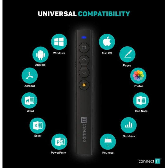 - Úložný priestor v spodnej časti prezentéra pre mini USB prijímač, ideálny pri transporte aj cestovaní