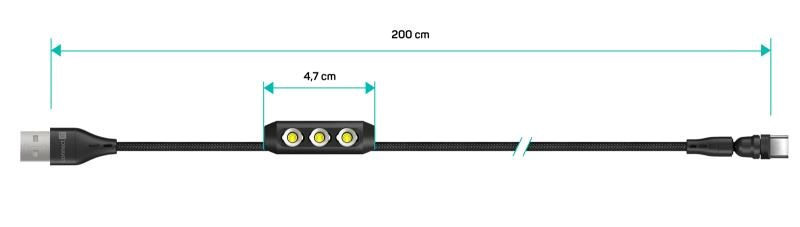 Praktický a univerzálny kábel Magnetic PowerLink 3v1 s podporou nabíjania a prenosu dát. Kábel disponuje tromi výmeniteľnými magnetickými konektormi (USB-C, Lightning a MicroUSB) s podporou rýchleho nabíjania pomocou max. prúdového toku 3 A.