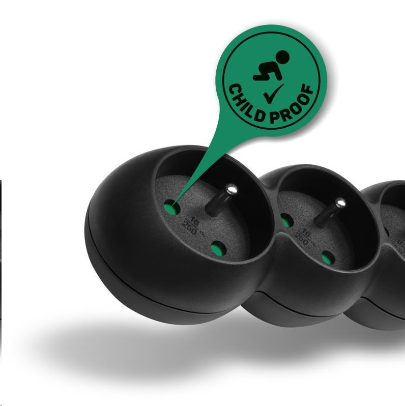 Detská ochrana pre všetky zásuvky (zásuvky sú prístupné len pri súčasnom zasunutí oboch vidlíc, takže ich nemožno zasunúť jednotlivo, napr. iba skrutkovač alebo pletacie ihlice)