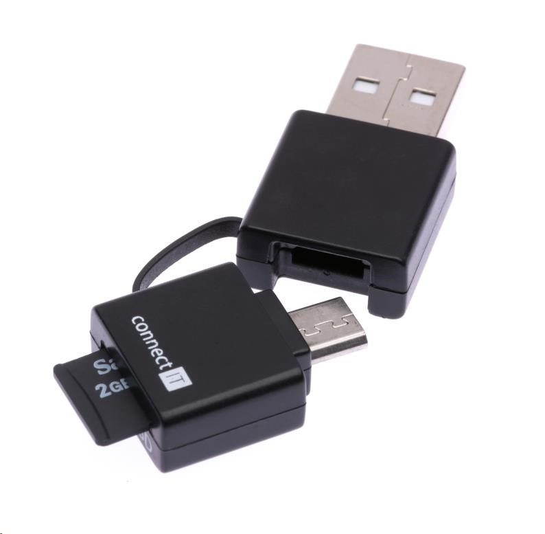- Čítačka kariet MicroSD pre smartfóny/tablety s konektorom microUSB a podporou USB OTG a pre všetky zariadenia s podporou USB a pamäťových zariadení (PC Windows, Linux, Mac OS)