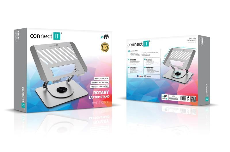 CONNECT IT Stojan na notebook Rotary, otočný, až 15.6", stříbrná