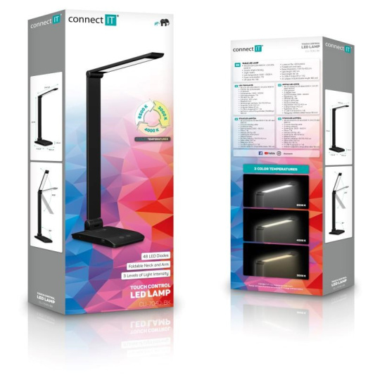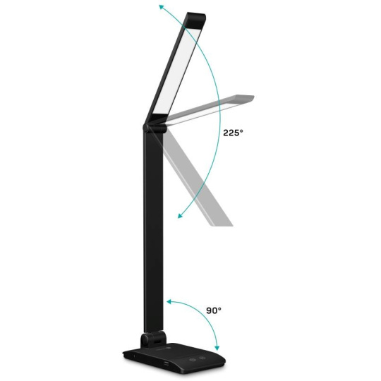 Vďaka sklopnému ramenu a krku nastavíte dokonalý uhol pre akúkoľvek prácu. Lampička disponuje USB-A výstupom s výkonom 5 W a dvoma praktickými dotykovými spínačmi, ktoré umožňujú zapnúť/ vypnúť lampu, nastaviť 3 úrovne jasu svetla alebo nastaviť farebnú teplotu svetla v 3 rôznych úrovniach (3000/4000/6500 K).