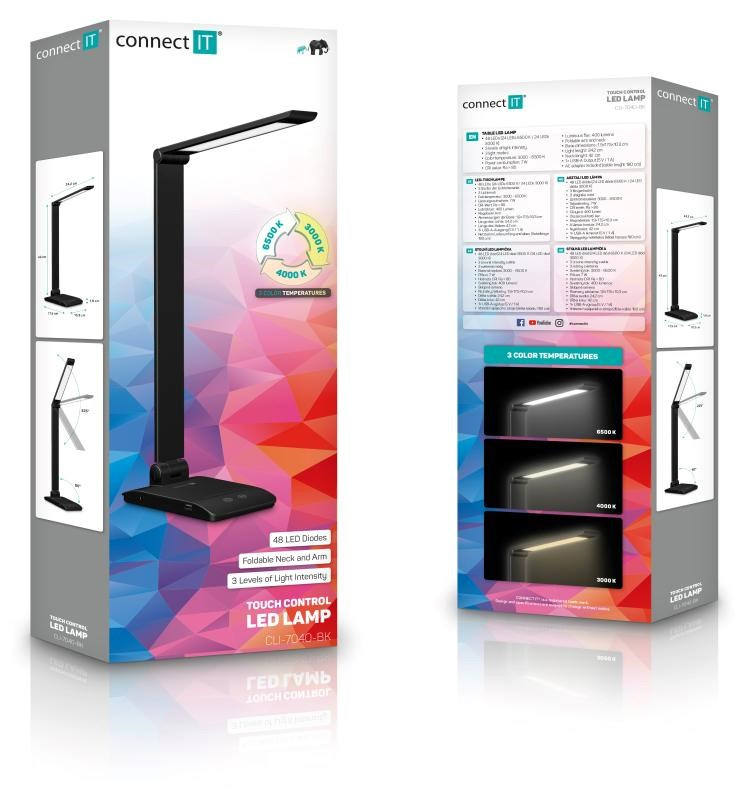Vďaka sklopnému ramenu a krku nastavíte dokonalý uhol pre akúkoľvek prácu. Lampička disponuje USB-A výstupom s výkonom 5 W a dvoma praktickými dotykovými spínačmi, ktoré umožňujú zapnúť/ vypnúť lampu, nastaviť 3 úrovne jasu svetla alebo nastaviť farebnú teplotu svetla v 3 rôznych úrovniach (3000/4000/6500 K).