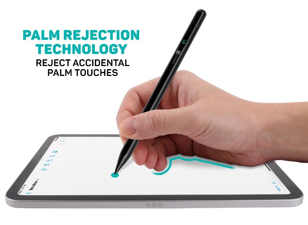 TouchPen disponuje technologií "Palm Rejection", která umožňuje psát a kreslit na dotykovém displeji tabletu s opřenou rukou, aniž by tato ruka zanechávala nežádoucí čáry nebo znaky. Technologie je navržena tak, aby automaticky ignorovala dotyky dlaně, zatímco zaznamenává dotyky a příkazy dotykového pera. Inteligentní hrot umožní snadnou úpravu a regulaci tloušťky čar pouhým nakloněním pera. Díky LED displeji budete mít vždy dokonalý přehled o stavu baterie. Balení obsahuje jeden vyměnitelný hrot navíc pro případnou výměnu.