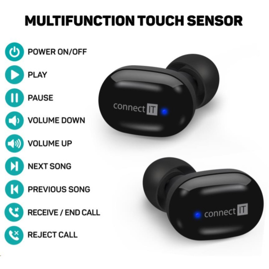 CONNECT IT True Wireless SensorTouch sluchátka do uší s mikrofonem, černá