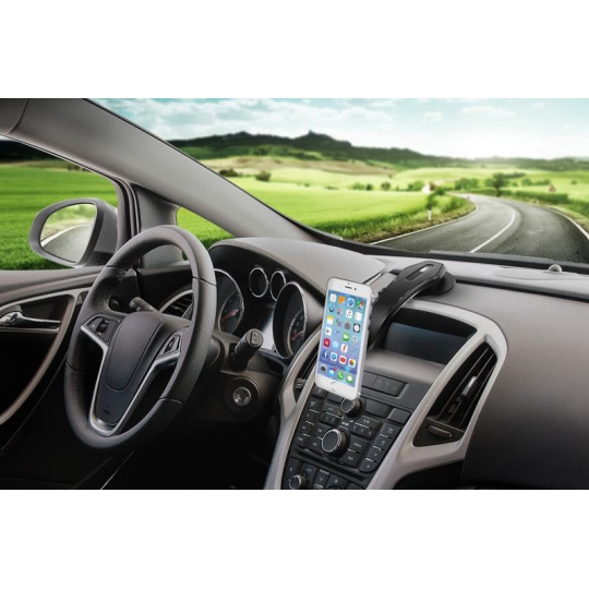 Variabilita polohy na vhodnom mieste na palubnej doske spĺňa bezpečnostné požiadavky na umiestnenie mobilného telefónu vo vozidle bez toho, aby bránil vodičovi vo výhľade. Veľmi jednoduchá inštalácia jednoduchým pripevnením gélovej prísavky na prístrojovú dosku a nalepením samolepky 3M. Stačí prilepiť jednu z dodaných kovových dosiek na zadnú stranu mobilného telefónu alebo ju vložiť do puzdra telefónu. Stačí telefón priblížiť a vďaka magnetickej sile sa v držiaku sám uzamkne. Držiak poskytuje rovnakú stabilitu vo vertikálnej aj horizontálnej polohe.