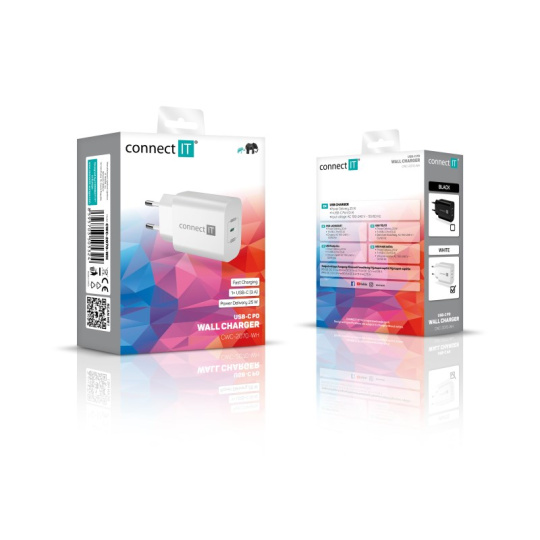 Cestovná USB nabíjačka CONNECT IT "Voyager2" určená na napájanie aj nabíjanie mobilných telefónov, tabletov, power bankov, akčných kamier, elektronických čítačiek kníh, MP3 a MP4 prehrávačov, herných konzolí a mnohých ďalších prenosných zariadení doma, v kancelárii aj na cestách. Technológia Power Delivery (PD) umožňuje rýchlonabíjanie s výkonom 25 W.