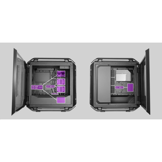 Kryt PSU je modulárny vďaka dvom nezávislým dielom, zatiaľ čo systém krytu káblov obsahuje 3 samostatné diely, z ktorých každý umožňuje montáž úložiska alebo čerpadla pre kapalinové chladenie.