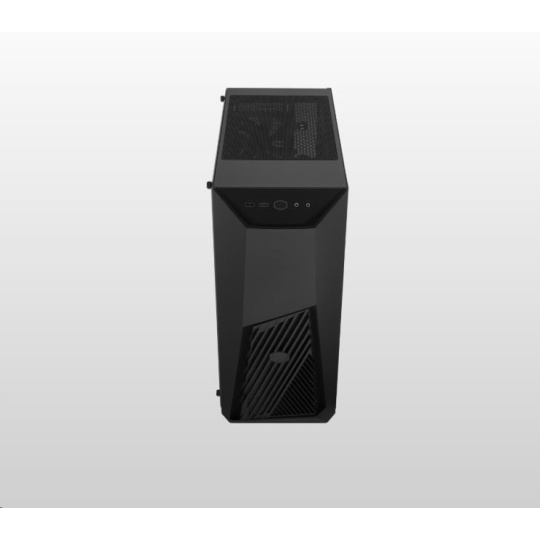 Základom nového MasterBoxu K501L je hranie hier. Osvetlený ventilátor na pozadí šikmého vetrania predného panelu vypovedá o jeho súťažnej stránke.