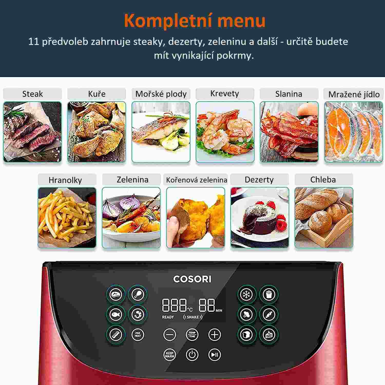 COSORI CP158-AF PREMIUM – horkovzdušná digitální fritéza - červená