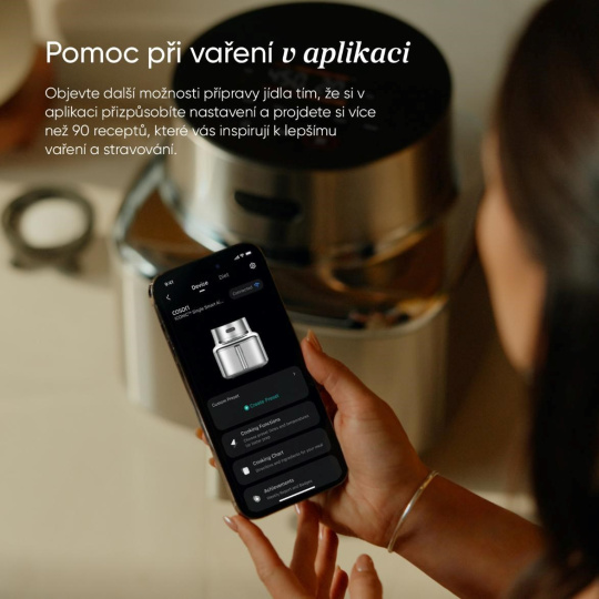 • Inteligentné ovládanie prostredníctvom aplikácie prináša recepty, plánovanie a plnú kontrolu priamo do vášho telefónu