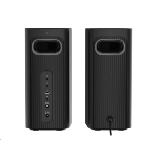 satelit: 2,0 m kábel pripojený k ľavému satelitu, kábel USB-C na USB-C (dĺžka kábla: 1,2 m), 3,5 mm stereo kábel na stereo (dĺžka kábla: 1,2 m)